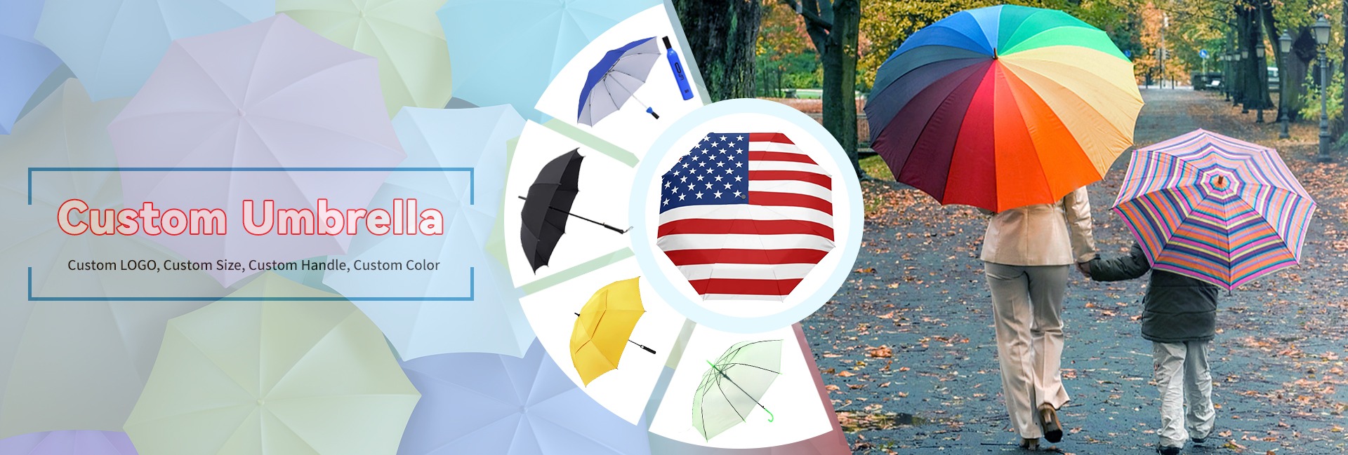 Venta al por mayor de alta calidad logotipo personalizado color niños y adultos paraguas transparente con la impresión de paraguas al aire libre